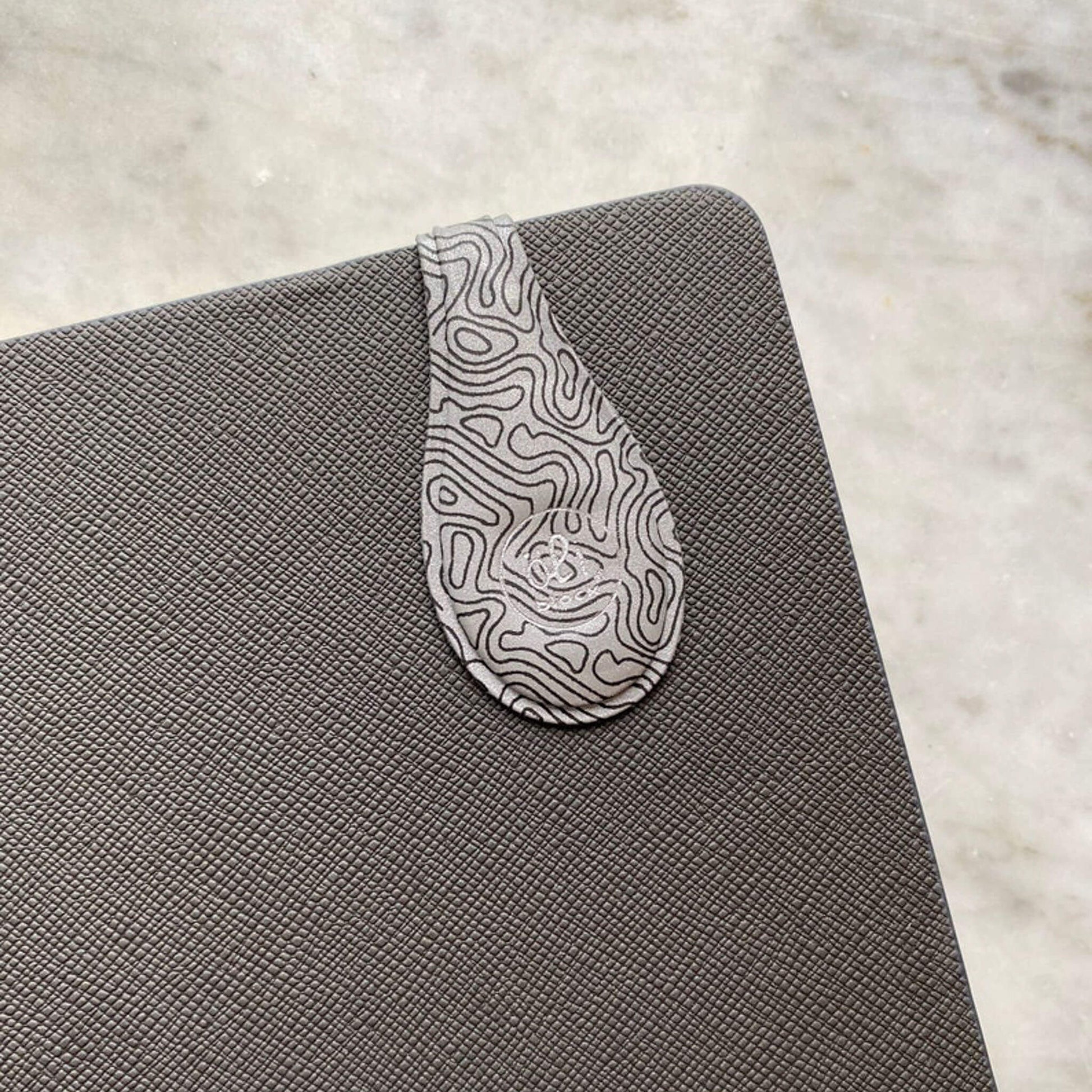Super-charged magnetic clips in an understated steel grey and black patterned design.